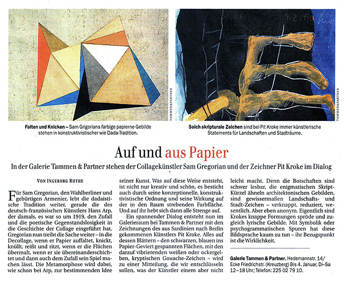 Sam Grigorian mit Pit Kroke, Galerie Tammen & Partner, Berlin