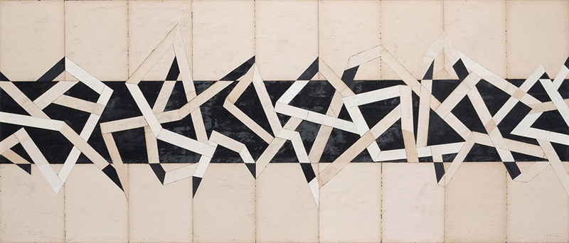 Untitled, 2021, Mixed media, décollage on paper, 100 x 238 cm
