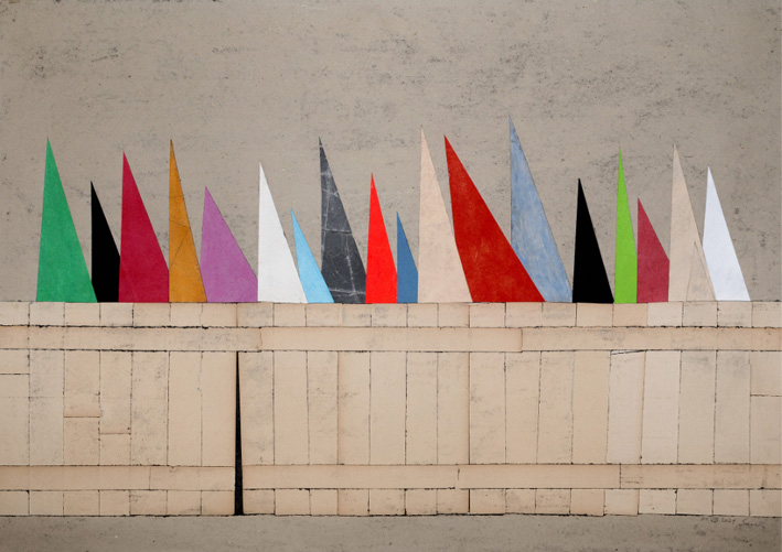 From the series "Behind the Fence", 2021, mixed media, décollage, 68 x 149 cm